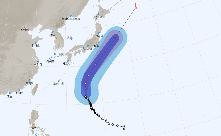 앞으로 4일 이내에 일본 도쿄를 지난 이후 온대저기압으로 태풍의 역할은 다 하게 되겠네요