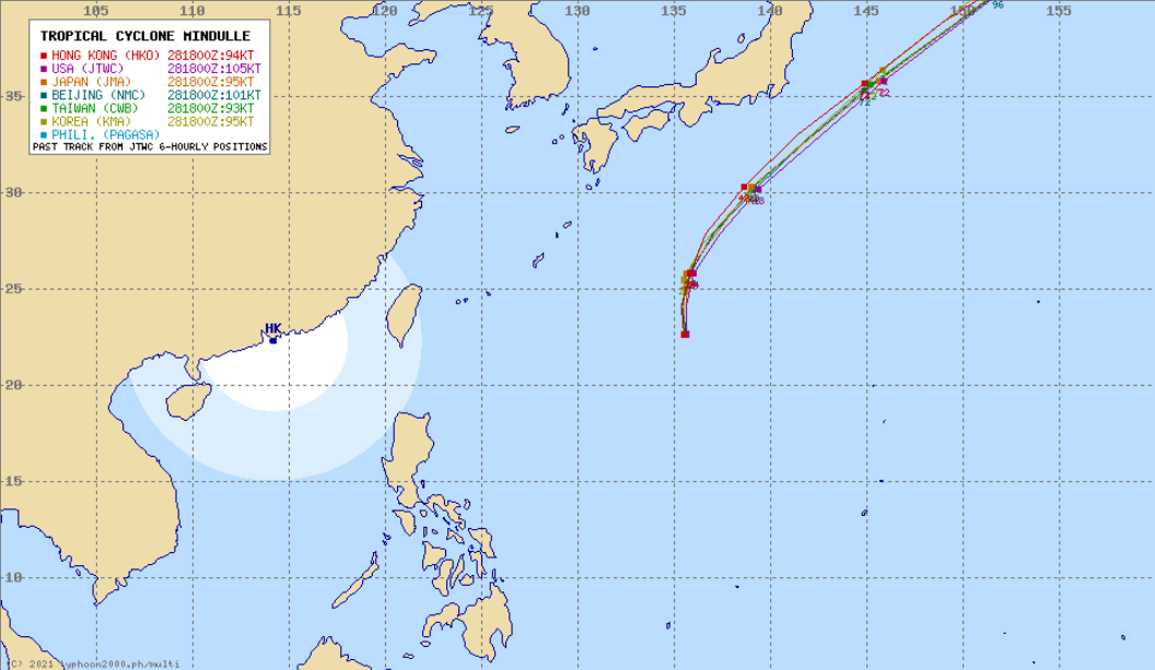 대만에서도 같은 경로를 보고 있습니다. 일본보다도 더 멀리 일본 옆으로 지나는 것을 보고 있네요. 오랜만에 모든 기상청들이 뜻을 같이 하고 있는 태풍 이동경로예상입니다.