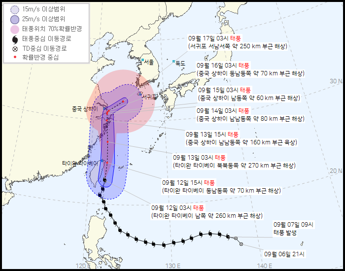 14호 태풍 진로예상 최신 정보 (9월 11일)