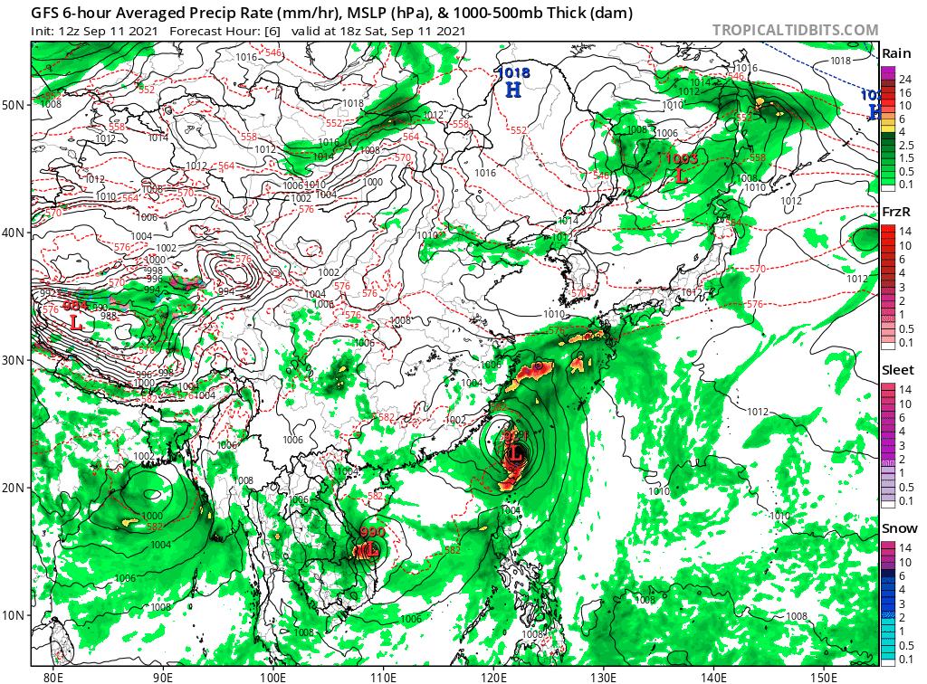 아래 이어질 대부분의 기상청 예보와는 조금 다른 모습이지만, GFS모델은 현재의 경로로 움직이면서 중국 남동부 해안에 정체가 될 때 생각보다 깊숙히 내륙지방까지 14호 태풍 찬투가 침투하는 것으로 보고 있습니다. 태풍의 세력은 잃고 온대저기압이 되어 남은 잔재가 우리나라를 관통하게 되네요. 이때는 태풍이 아니어서 비가 많이 내리게 될 것입니다.