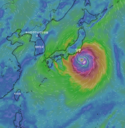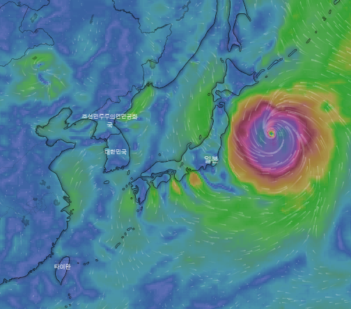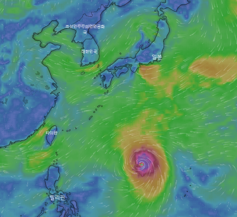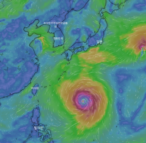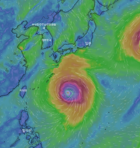 윈디닷컴에서 살펴본 태풍의 모습입니다.