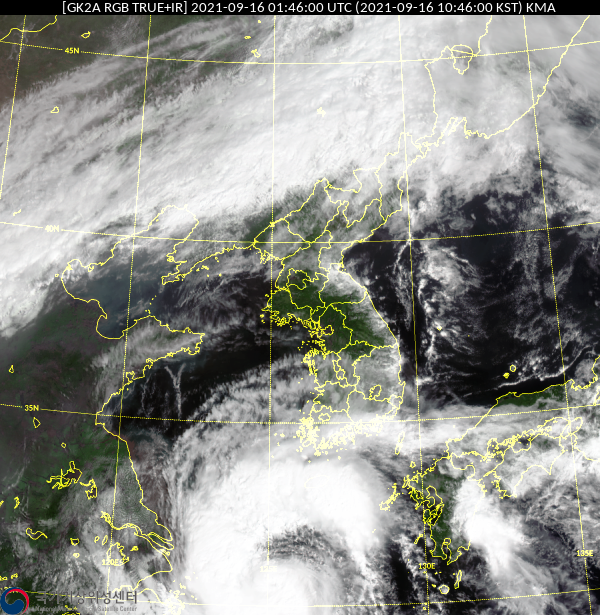 천리안 위성영상으로 본 모습입니다. 그 동안 바람만 강하게 불다가 지금은 다시 비구름이 되어서 제주에 많은 비를 내리고 있습니다. 북상하게 되면서 비가 내리는 지역은 점차 많아질 것이고 남부지역에 비가 내일 것입니다. 다행히 태풍의 크기가 크지 않아서 수도권을 비롯한 중부지방은 별다른 영향이 없겠습니다.