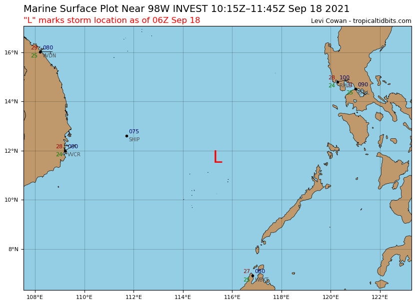 열대저기압 98W는 태풍으로 발생하지 못하고 태풍 15호 뎬무는 열대저압부 99W로 발생할 것입니다. 상세 정보는 아래 참조
