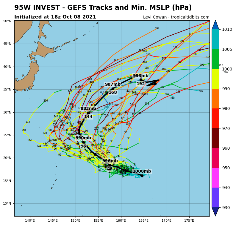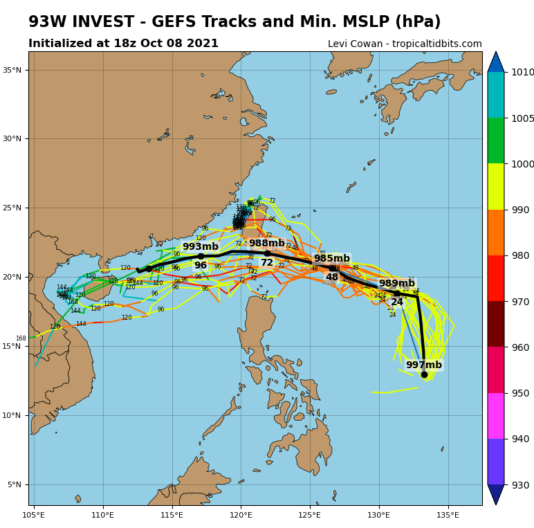완전히 똑같은 경로를 보여주고 있습니다. 이는 93W와의 합체를 의미하는 것 같기도 한데요, 우리나라에는 영향을 줄 가능성이 아예 제로이니까 다행이라고 할 수 있겠습니다.