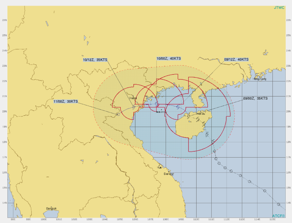 17호 태풍 경로는 베트남 부근 해상에서 돌고 있는 중입니다. 남중국해에서 돌아다니고 있는 중이며, 베트남 하노이 부근으로 상륙하면서 곧바로 태풍에서 열대저압부로 소멸되어 버립니다.
