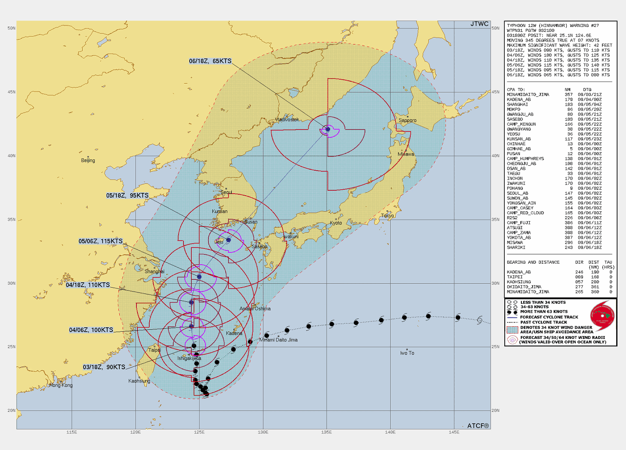 미국합동태풍경보센터인 JTWC에서 나오는 태풍 경로 정보는 아주 많은 곳에서 참조하는 사이트입니다. 아래와 같은 이미지 아주 익숙하시죠?
