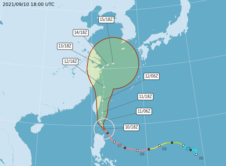 태풍의 경로상에 놓일 뻔 했던 대만 기상청의 예보는 대만 동쪽 해상으로 태풍이 지나가게 되면서 태풍의 서쪽에 대만이 놓이게 되는 경로로 업데이트 했습니다. 상륙하는 최악의 시나리오는 피했으나, 매우 강한 상태로 대만 동쪽을 지나고 육상과의 마찰은 일부 발생하지만, 중심이 여전히 바다에 있어서 세력 약화 속도가 늦어지게 된 것이죠