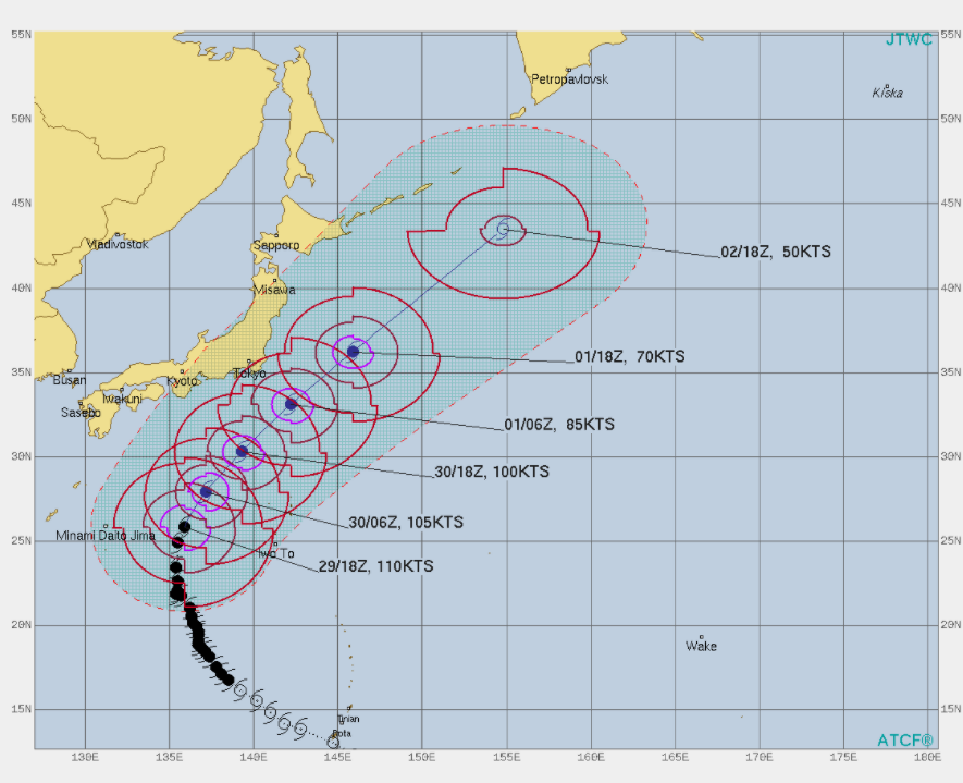 일본기상청 태풍예보는 지금까지 잘 예상해 왔고 이번에도 여전히 잘 맞네요. 도쿄와 그 부근만 태풍 중심에서 멀리 떨어진 상태에서 간접영향을 받게될 것 입니다.