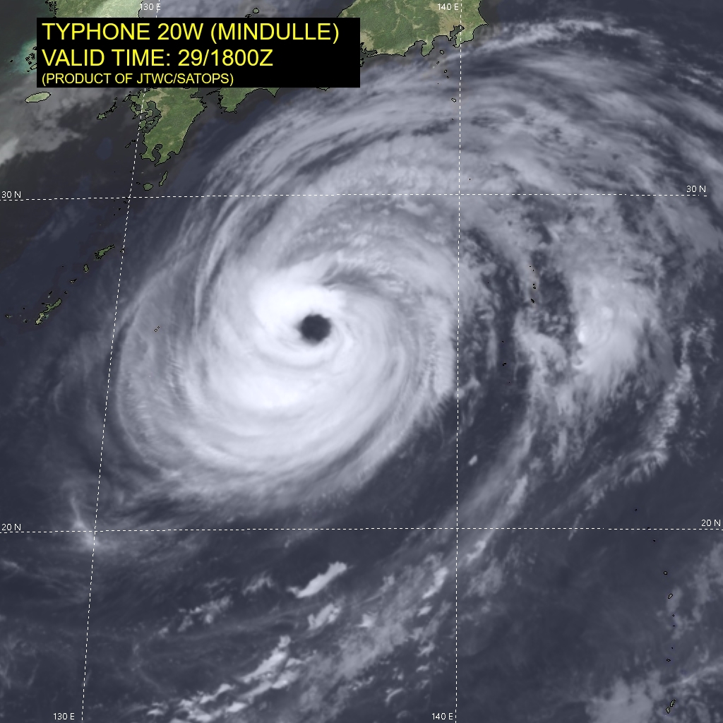 JTWC에서 공개한 위성사진에 태풍 민들레의 눈이 아주 또렷한 것을 볼 수 있습니다. 매우 깨끗한 눈이 다시 완성이 된 것입니다. 이동 속도가 느려서 그랬을 것인데, 이제 다시 빠르게 북동진하면 눈이 흐트러지면서 점점 약해지게 됩니다.