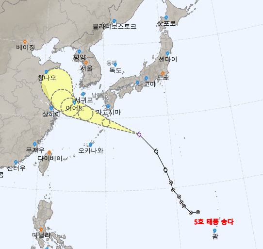 5호 태풍 송다의 예상 진로를 확인하는 방법으로는 기상청 정보를 보는 것도 있지만, 다른 나라의 정보를 보는 것도 엄청 도움이 됩니다.